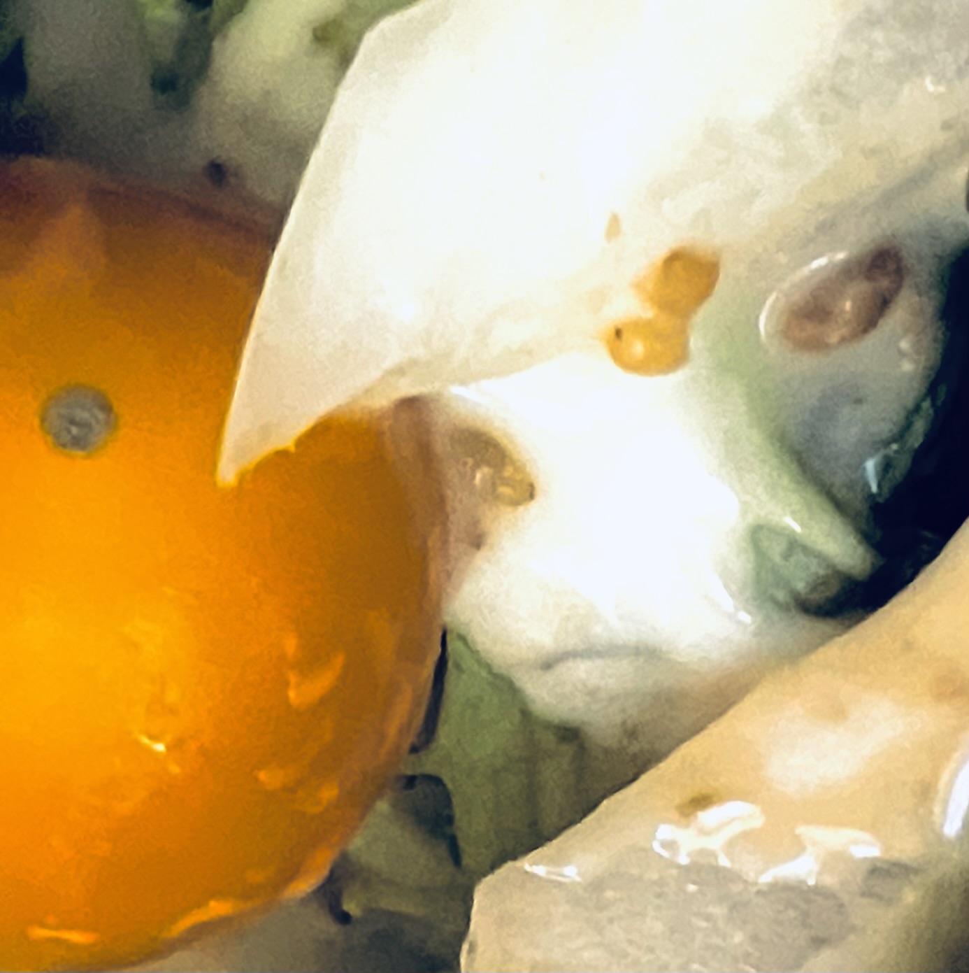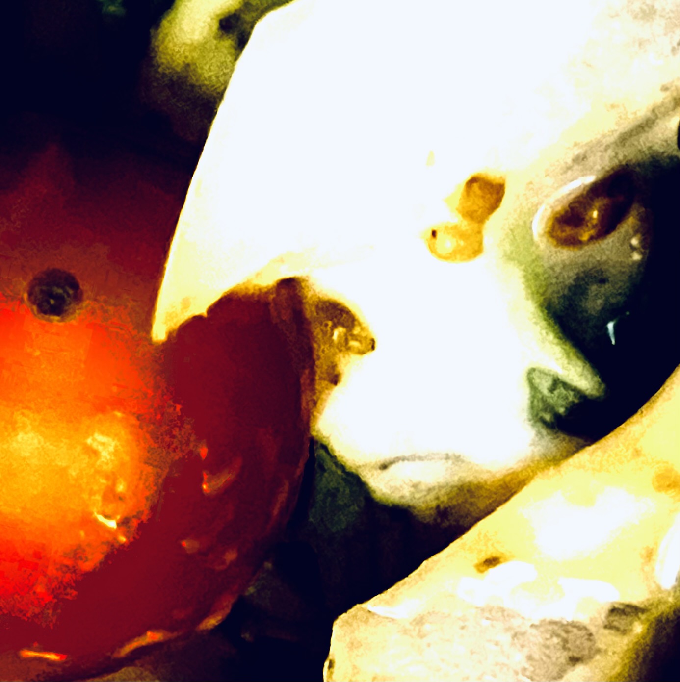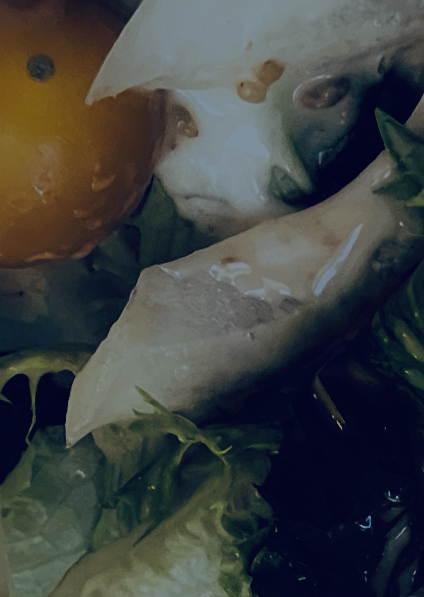 Creative Extraterrestrial Salad Recipe !, with Sesame dressing! (I heard today some people with peanut allergy maybe also allergic to sesame ! I don’t have a peanut allergy or a sesame allergy that i know of though but i Love delicious Japanese roasted sesame dressing !) This is kind of abstract!, but it looks kind of like an Ancient Extraterrestrial Vampire Man ! He is sinking his fangs into a juicy tomato! Then if you turn it upside down !, it look kind of like two different Ancients Extraterrestrial Siamese Stingray Creatures ! , And an Ancient Extraterrestrial Electric Eel! , And an Ancient Extra Glowing Heart ! By Windy Rainy Stormy Castle!